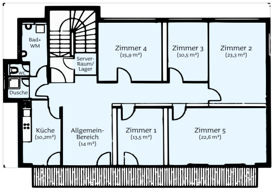 Im Innsbrucker Stadtteil Saggen, zwischen der Innpromenade und der gut frequentierten Bushaltestelle Mühlauer Brücke gelegen, gelangt ab 1.3.2022 die 5-Zimmer Dachgeschoßwohnung eines Hauses – bevorzugt als Wohngemeinschaft - zur Vermietung.