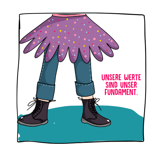 Das Fundament für unsere Überzeugungen sind unsere Werte: Freiheit, Gleichheit, Gerechtigkeit, Solidarität, Frieden und Vielfalt. Nach ihnen richten wir all unser Handeln.