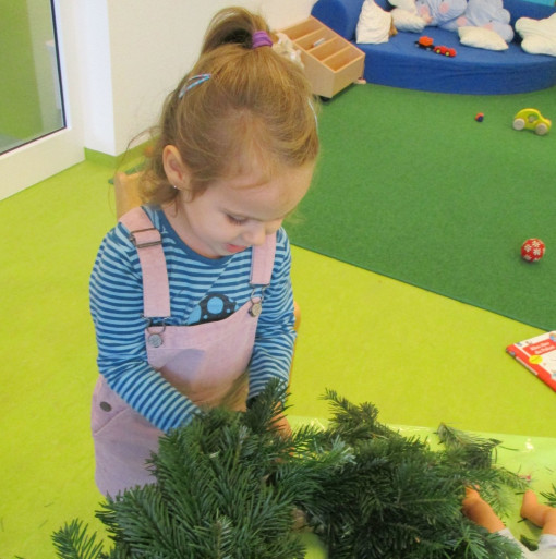 Gemeinsam machen wir täglich neue Erfahrungen und erleben viele Abenteuer. Die Kinder haben die Möglichkeit, ihren Forschergeist, der in diesem Alter sehr ausgeprägt ist, auszuleben. Mit Ausdauer und Geschick erobern die Kinder ihre Umwelt. Jeder Tag wird intensiv genutzt, um den Wissensdurst der Kinder zu stillen. Im Gruppenraum verbringen wir viel Zeit damit zu singen, zu tanzen, zu turnen, mit dem Erlernen von Fingerspielen, mit kreativem Gestalten u.v.m. Uns zieht es unabhängig von der Jahreszeit in die Natur. Wir nutzen unseren weitläufigen Garten und holen die Natur auch in die Gruppe.
