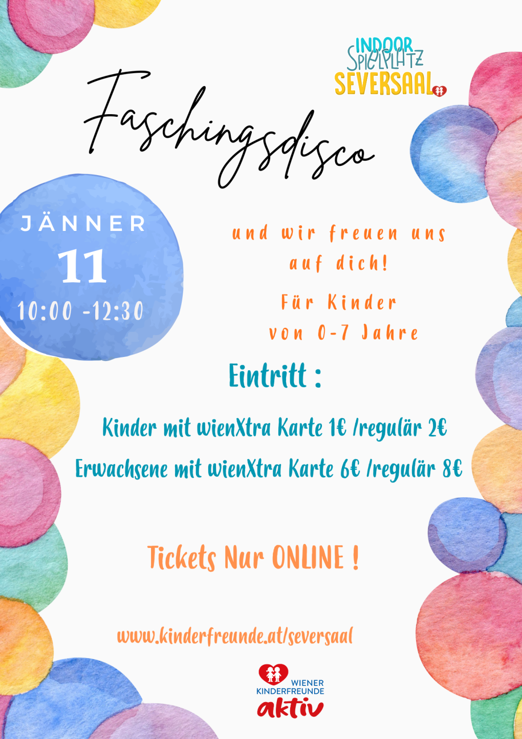- Sonntag, 11.01.2026 von 10:00 bis 12:30 Uhr: Sevi-Disco Thema "Fasching". Tickets bitte vorher hier online buchen!