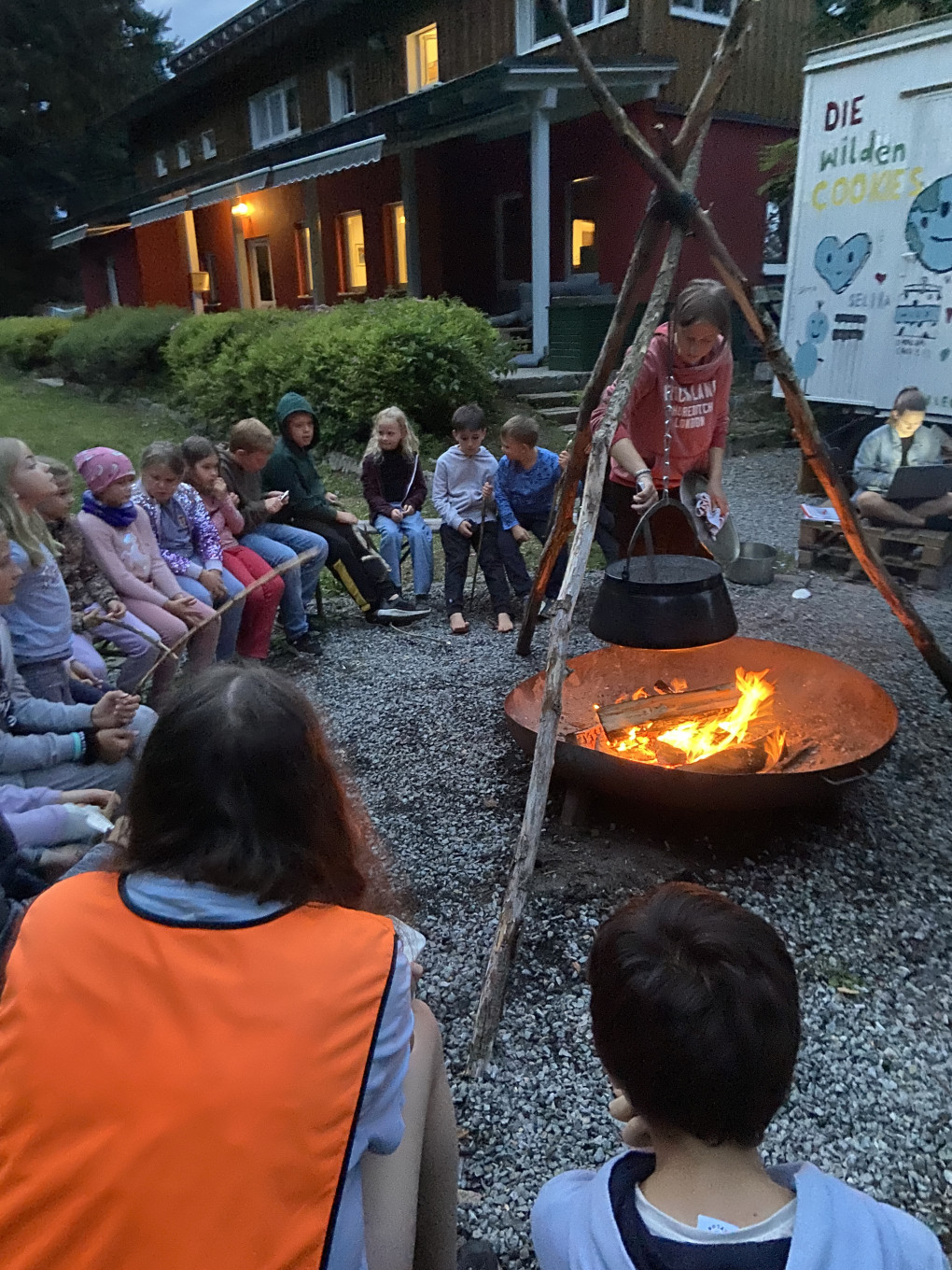 Werde zum/zur Feuermeister:in und lerne, wie man ein Lagerfeuer entfacht. Schnapp dir deine Crew und geht auf Schatzsuche im Wald, während ihr coole Hütten aus gesammeltem Holz baut! Entdecke die bunten Wiesen, spiele und tobe mit deinen neuen Freund:innen und finde spannende Dinge in der Natur. Lasst uns zusammen am Lagerfeuer leckere Snacks zaubern und auf eine Abenteuerwanderung entlang des Baches gehen, um die Tier- und Pflanzenwelt zu erkunden. Hier kannst du dich wie ein:e echte:r Naturheld:in fühlen!