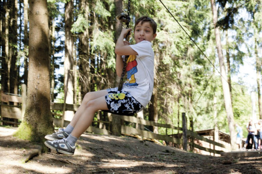 Unser Waldspielplatz eignet sich ideal an heißen Sommertagen als Rückzugsgebiet um einen kühlen Kopf zu bewahren und etwas die Seele baumeln zu lassen. Wem dies zu langweilig ist, findet auch eine Seilrutsche vor. Die rasante Fahrt quer durch den Wald macht nicht nur den „Kleinen“ Spaß, sondern lässt auch Erwachsene wieder zu Kindern werden.