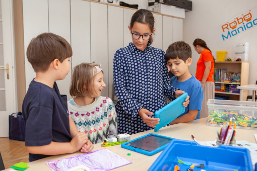 Anhand von LEGO Mindstorms erarbeiten sich die Kinder Fertigkeiten in den Bereichen Elektronik, Sensorik, Motorik, Roboter und Programmierung. In der Aufgabenstellung „Mission to Mars“ erlernen Kinder spielerisch die Komplexität von „Moonshot“-Zielen zu begreifen, zu analysieren und an deren Lösung zu arbeiten. Dabei werden intelligente Sensoren (Distanz, Farbe, Kontakt) eingebunden, um komplexe Programmieraufgaben (Schleifen, Schalter-Blöcke, Datenleitungen, Variablen...) mit spielerischen Roboter-Aufgaben zu verbinden. In altersadäquater Form werden Querverbindungen zu mathematischen, technischen und naturwissenschaftlichen Inhalten geschaffen.