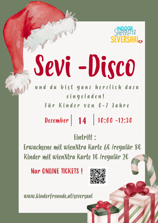 - Sonntag, 14.12. von 10:00 bis 12:30 Uhr: Sevi-Disco Thema "Nikolaus". Tickets bitte vorher hier online buchen!