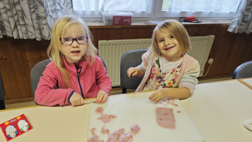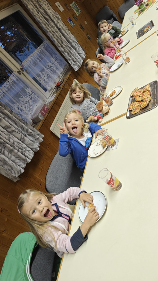 Die Kinder bereiteten alle gemeinsam leckere Pizzabrötchen vor. Es wurden Schinken und frisches Gemüse geschnipselt und natürlich Käse gerieben. "Wir finden, man soll schon früh den Kindern den Umgang mit Lebensmitteln, das Schneiden und Kochen zeigen. Außerdem macht Kochen gemeinsam Spaß und das Essen schmeckt danach dafür umso besser." so die Martina Marx von den Kinderfreunden Wolfern.