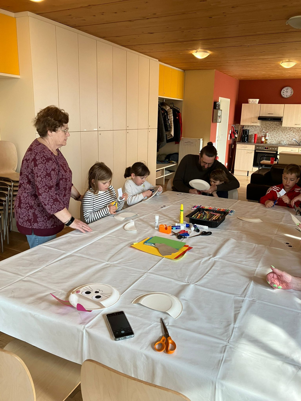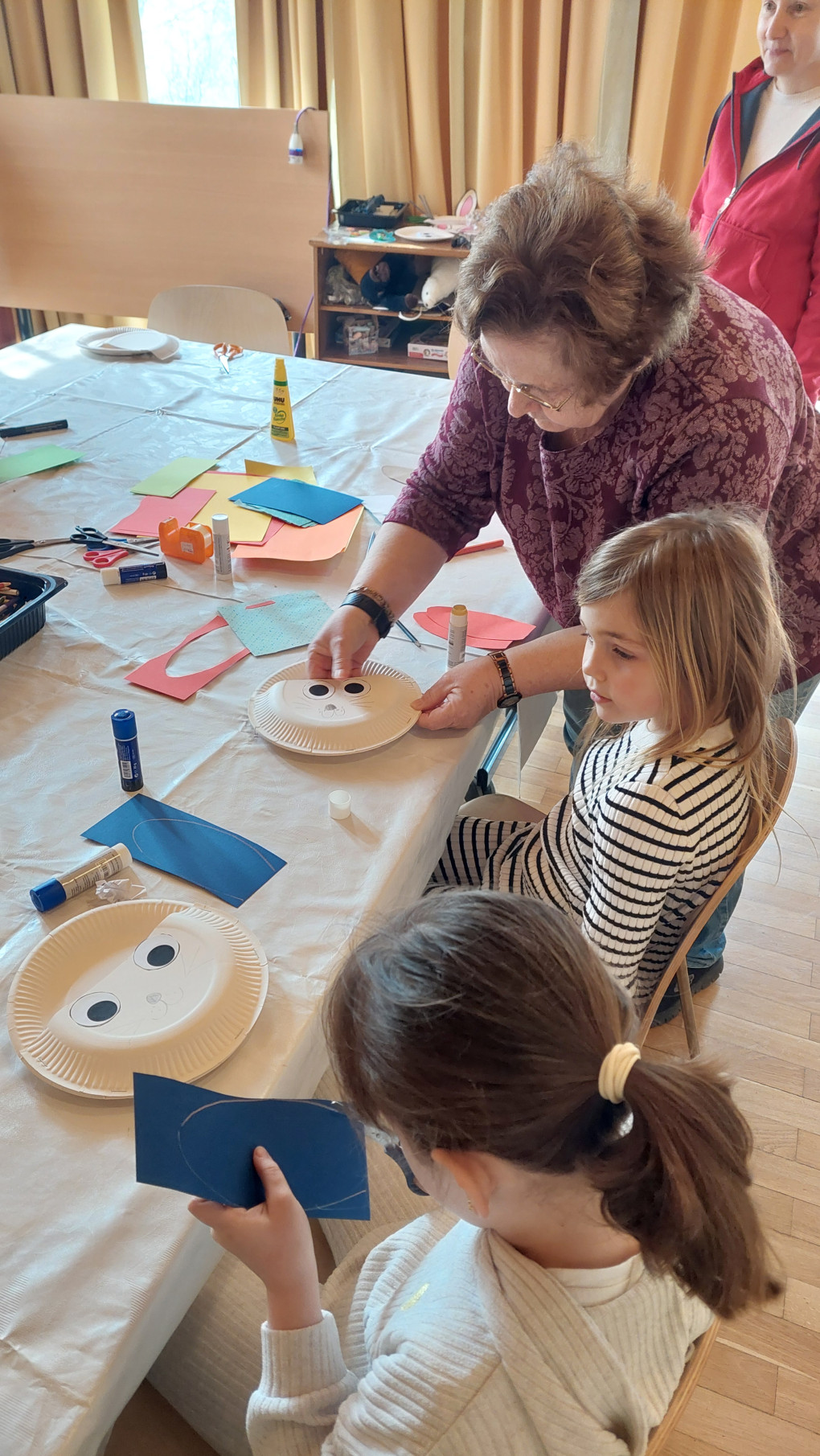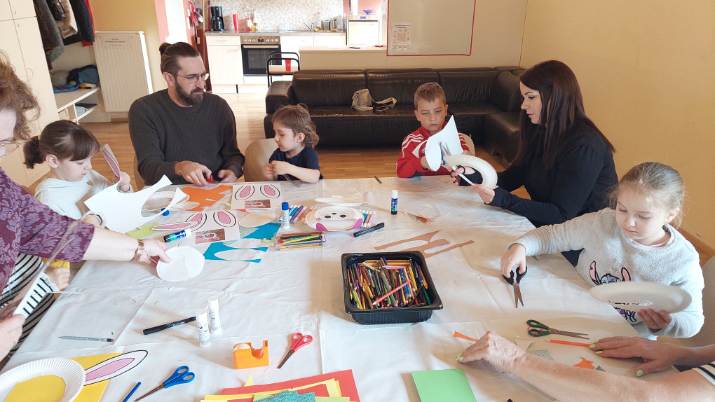 Bei den Kinderfreunden wird fleißig für den Osterhasen gebastelt: eine Maske, ein Körbchen und ein Handabdruck entstehen. Während der Osterhase die Nester versteckt, wird eine liebe Geschichte aus der Osterhasenwerkstatt vorgelesen – passend zum Vorlesetag. Danach darf sich jedes Kind ein kleines Buch aussuchen, bevor alle gemeinsam auf die Suche nach den versteckten Osterkörbchen und bunten Ostereiern gehen.