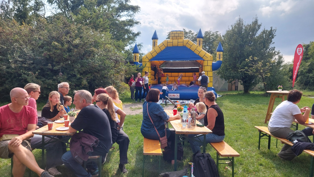 Am Samstag fand ein fröhliches Familienfest statt, das für Groß und Klein jede Menge Spaß bot. Über das Gelände verteilt sorgten abwechslungsreiche Spielestationen für Unterhaltung – vom Teebeutelzielwurf bis zum Riesen-Tic-Tac-Toe war für jeden etwas dabei. Ein leckeres Buffet mit süßen und herzhaften Speisen lud zum Schlemmen ein und der Duft von frischem Popcorn lag in der Luft.