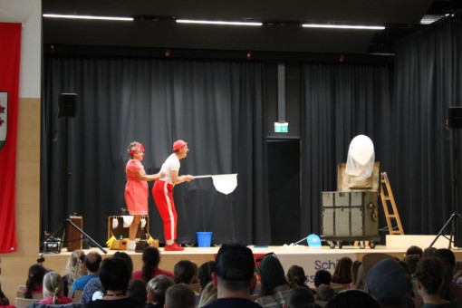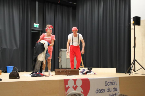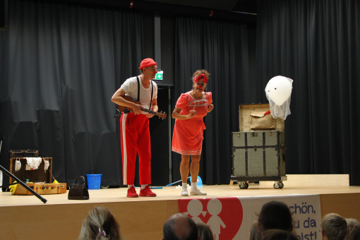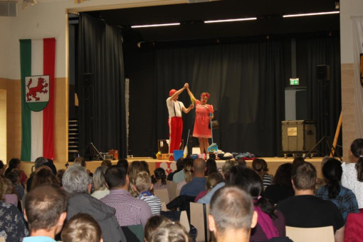 Heuer waren Herbert & Mimi wieder zu Gast in Sierning. Sie spielten das Programm “Kraut & Ruibn” und es war wieder sooo lustig! Ungefähr 220 große und kleine Gäste hatten viel Spaß und danach gab es noch ein üppiges Kuchen-Buffet (+ Pizza-Häppchen für Pikant-Fans) mit Saft, Limo, Kaffee und Wasser, bei dem man dann noch ein bißchen beisammen stehen und sich stärken konnte.