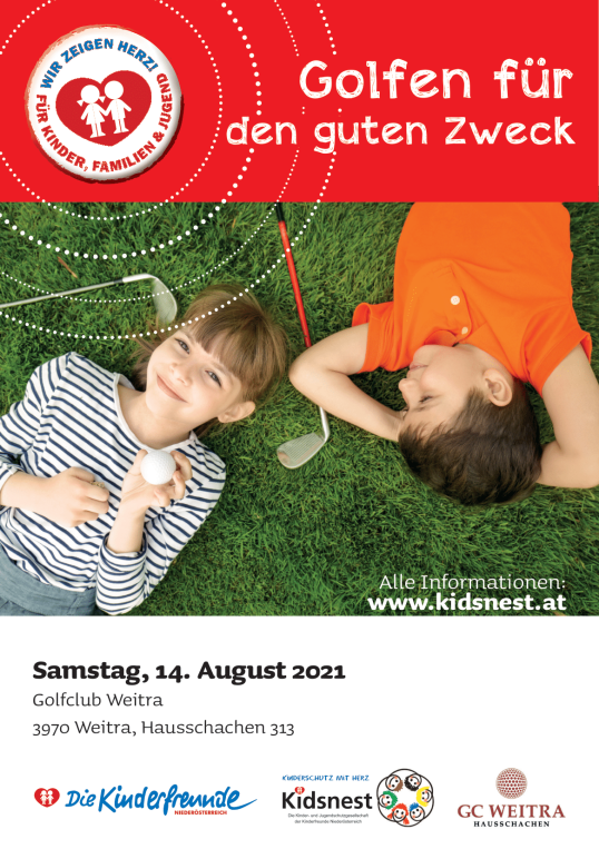 Ein besonderes Highlight für das Kidsnest Kinderschutzzentrum Waldviertel findet am 14.8.2021 im Golfclub Weitra statt: Golfen für den guten Zweck ist angesagt!