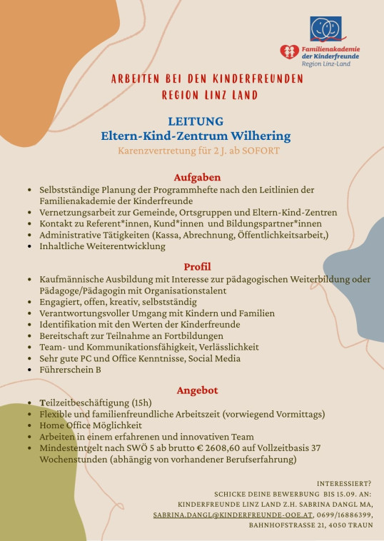 LEITUNG für unser Eltern-Kind-Zentrum Wilhering ab SOFORT!