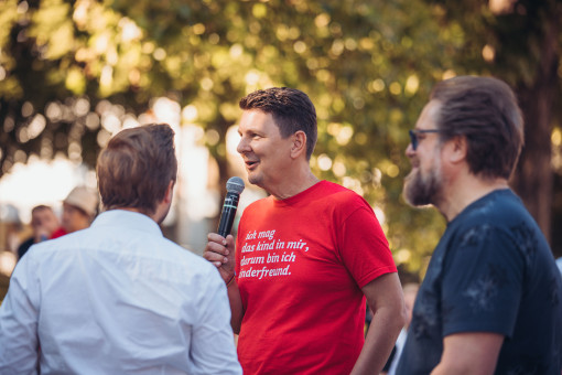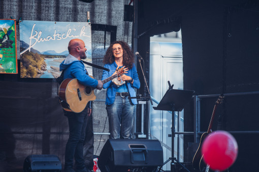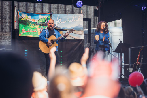 Der krönende Abschluss fand um 18 Uhr auf der großen Bühne statt. Die bekannten Liedermacher Bluatschink vergnügten die begeisterten Zuhörer:innen mit einem Querschnitt aus ihren mittlerweile neun Kinder-CDs. Die Stimmung unter den Kleinen war großartig – und das Konzert ein würdiger Abschluss eines fulminanten Tages für alle Familien.