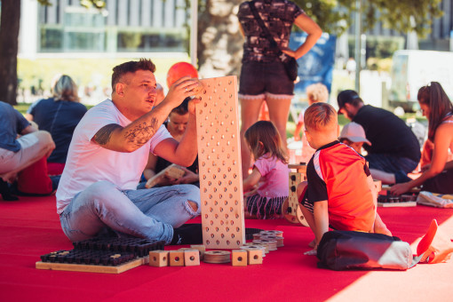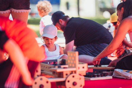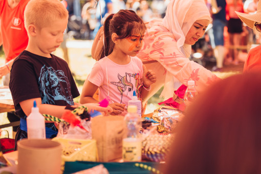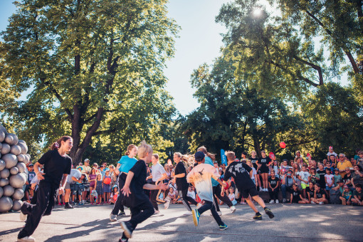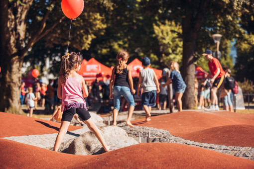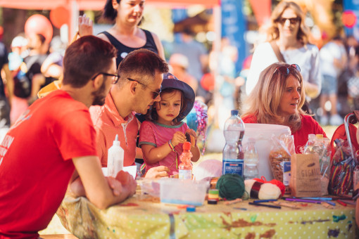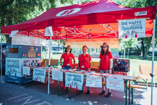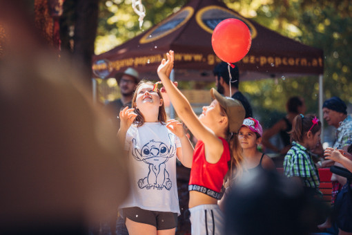 Und unbeschwertes Kind-Sein mit Spaß und Action war garantiert: Der Linzer Volksgarten wurde zum wahren Kinder- und Spielparadies: vier Hüpfburgen, ein Bauspielplatz, Wasserspielplatz, Steckspiele und das beliebte Kistlrutschen der Linzer Kinderfreunde waren nur der Anfang. Kinderschminken, Airbrush-Tattoos, Upcycling, Basteln mit Papier, Malen und Gatschen, Siebdruck, Musikinstrumente-Basteln uvm. sorgten dafür, dass niemals Langeweile aufkam.