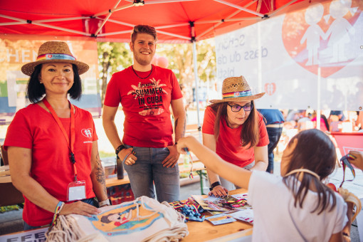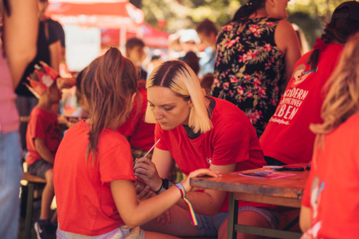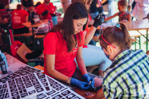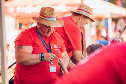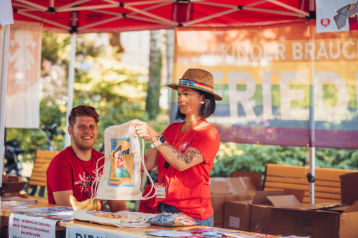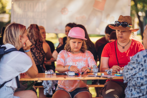 Jedes Kind erhielt ein Kinderfreundefest-Band in Regenbogenfarben als Geschenk somit bleibt die schöne Erinnerung an das große Familienfest noch lange am Handgelenk erhalten.