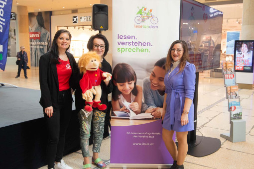 Mit dabei waren die Autorin und künstlerische Leiterin des Linzer Puppentheaters, Christa Koinig; Gabi Müller, Lesementorin bei ibuk – Verein für Integration, Bildung und Kultur sowie Elementarpädagoge Armin Kaar aus dem Betriebskindergarten der PlusCity / Kindergarten Pasching.