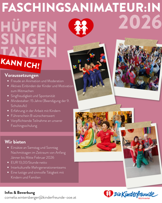 Bewerbungen bitte an: cornelia.wintersberger@kinderfreunde-ooe.at