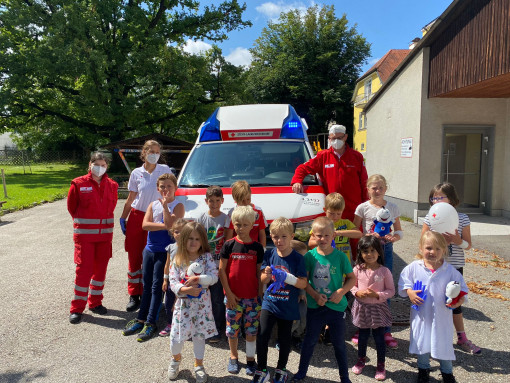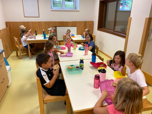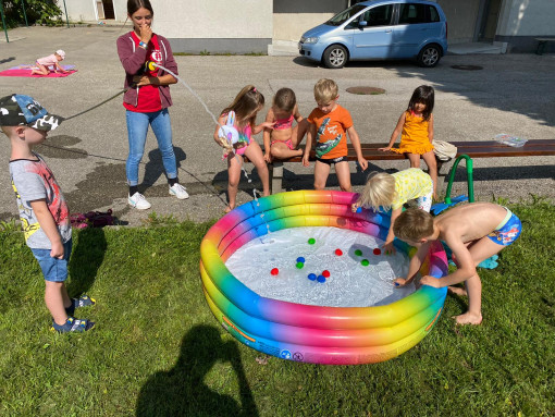 In der ersten Woche drehte sich alles um Meer und Wasser. Beim Ausflug zum Zeltlagerplatz der Kinderfreunde in Molln konnten die Kinder naturnahe Erfahrungen direkt am Wasser machen. Darauf folgte die Woche der Sinne, wo auch ein Besuch bei Alpakas in Steinbach/Steyr stattfand. Die letzte Woche stand ganz im Zeichen der Superheldinnen und Superhelden. Deshalb durfte natürlich auch ein Besuch der Rettung nicht fehlen, bei dem die Kinder allerlei ausprobieren durften. Am letzten Tag durften alle eine Superheld*innen-Ausbildung machen und ihre persönliche Superheld*innen-Maske tragen.
