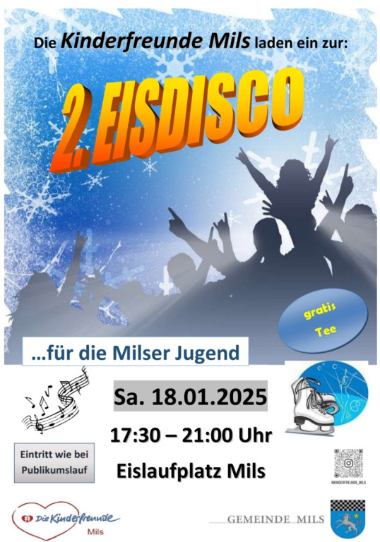 Die OG Mils lädt zur 2. Eisdisco für die Milser Jugend ein.