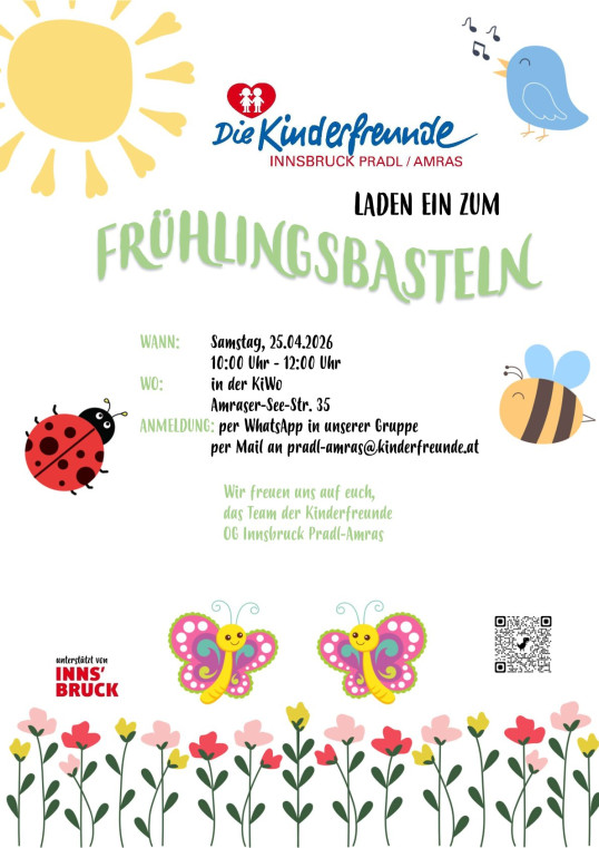 ANMELDUNG: per WhatsApp in unserer Gruppe per Mail an pradl-amras@kinderfreunde.at