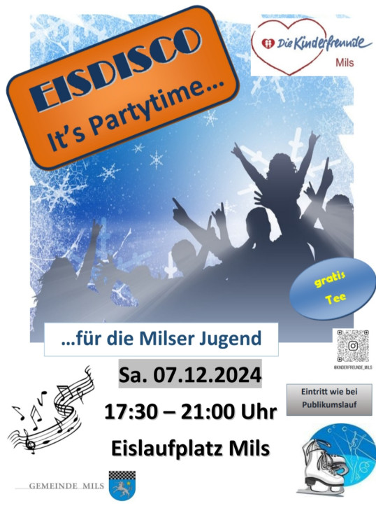 Die Kinderfreunde Ortsgruppe Mils lädt zur großen Eisdisco für die Milser Jugend.