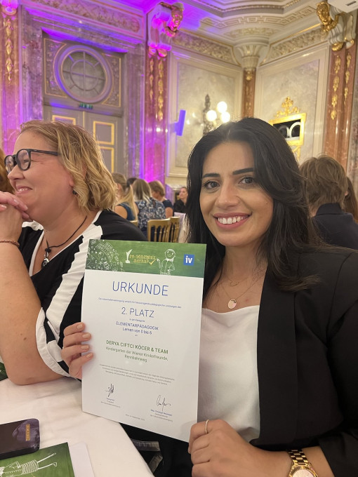 Derya Ciftci Köcer & Team vom Kinderfreunde-Kindergarten Rennbahnweg 52 konnte mit ihrem Projekt Hautfarbe - Wie bunt ist unsere Welt? die Jury des IV-Teacher's Award bereits zum 2. Mal in Serie überzeugen.