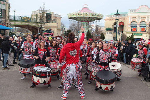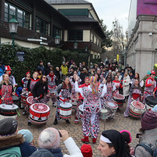 Während des Umzugs durch den Wurstelprater (ca. 14.20 bis 15.30 Uhr): Musik und Animation von Fahrzeugen die den Umzug begleiten, angeführt wird der Umzug von der Trommlergruppe Batala Austria, ein Liliputzug steht exklusiv für Inclusive (Kinder mit Behinderung) Besucher:innen zur Verfügung