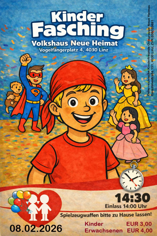 Einfach verkleiden und ins Volkshaus Neue Heimat vorbeischaun. Einlass ab 14.00 Uhr.