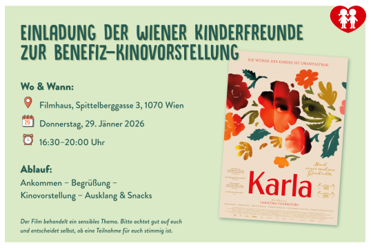 Die Teilnahme an der Veranstaltung ist mit einem Spendenbeitrag von 25€ verbunden. Der Reinerlös kommt den Familienberatungsstellen der Wiener Kinderfreunde zugute.