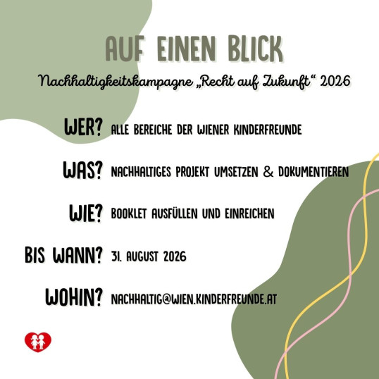 Bei den Wiener Kinderfreunden glauben wir fest daran: Wenn wir gemeinsam anpacken, entsteht Zukunft – bunt, mutig und voller Herz. Deshalb starten wir 2026 unsere große Nachhaltigkeitskampagne "Recht auf Zukunft".