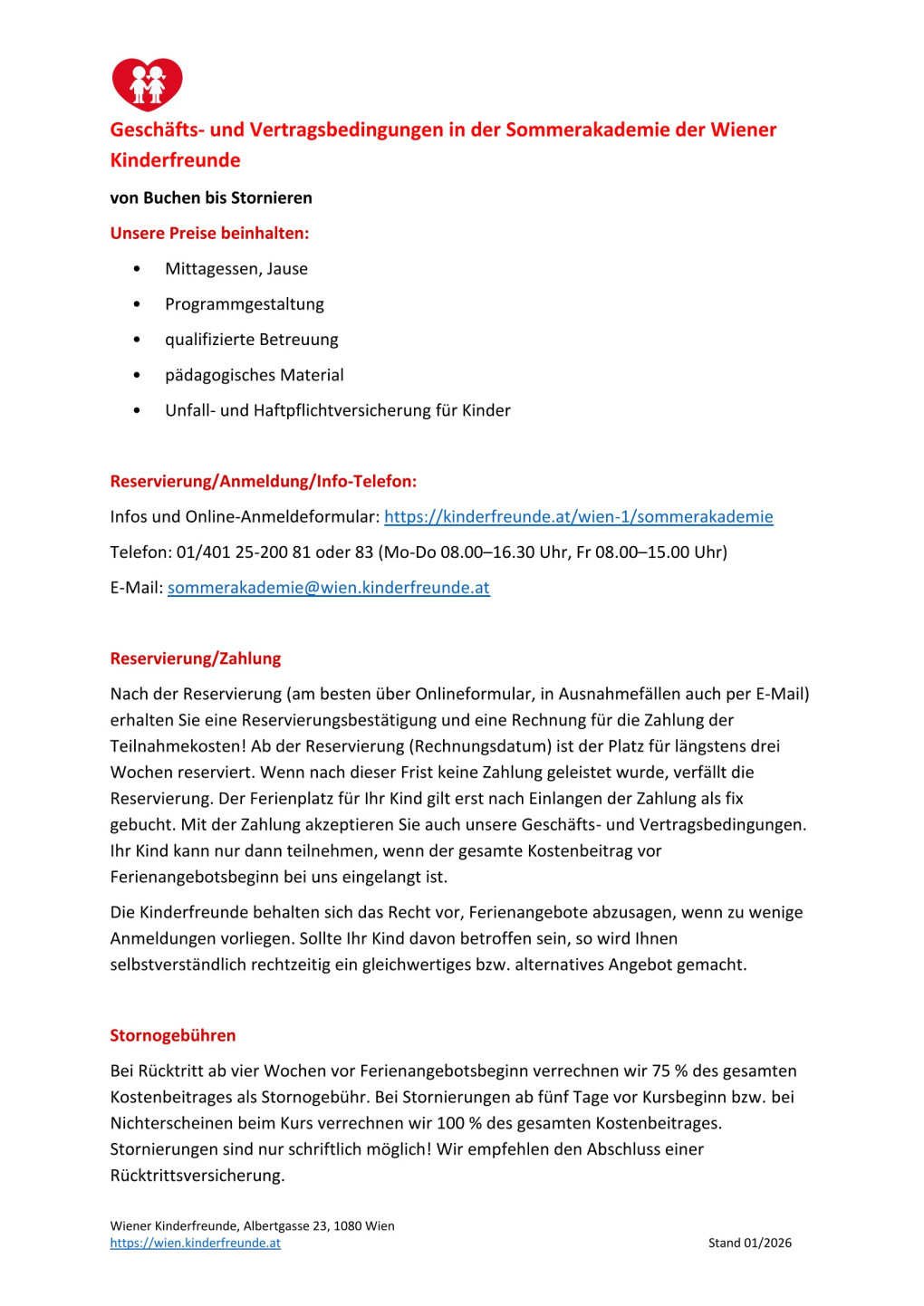 Wir freuen uns auf spannende Wochen gemeinsam mit Ihren Kindern bei den Sommerakademien der Wiener Kinderfreunde!