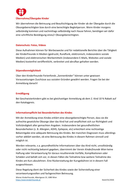 Die Angebote für 2026 sind ab jetzt verfügbar. Buchungen können dann über das Online-Anmeldeformular vorgenommen werden.